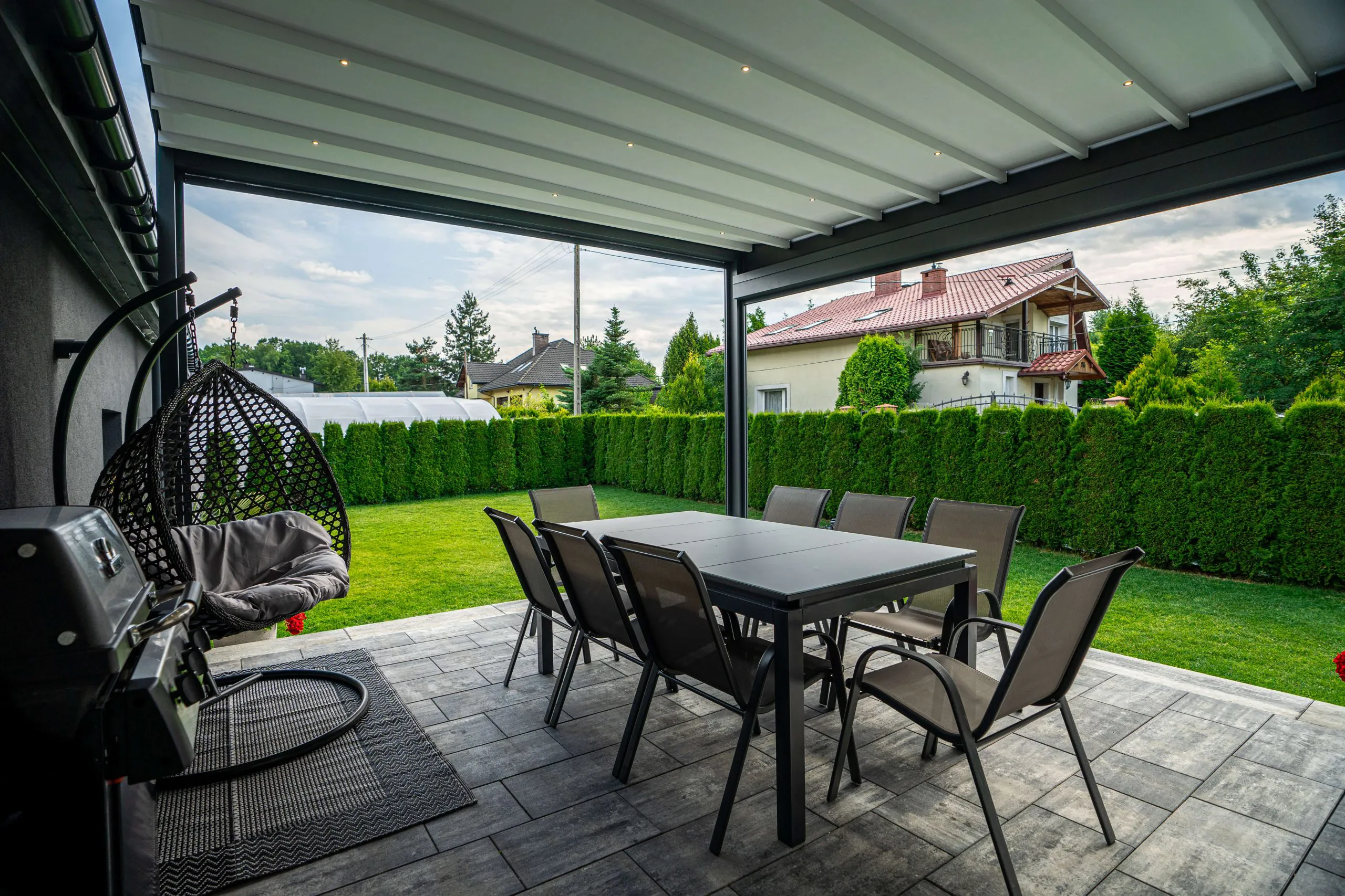 Pergole można wyposażyć w zintegrowane rolety przeciwsłoneczne, zabudowę szklaną lub dekoracyjne lamele pionowe oraz poziome. Rolety w tym systemie posiadają czujnik, podnoszący je w momencie napotkania na przeszkodę!